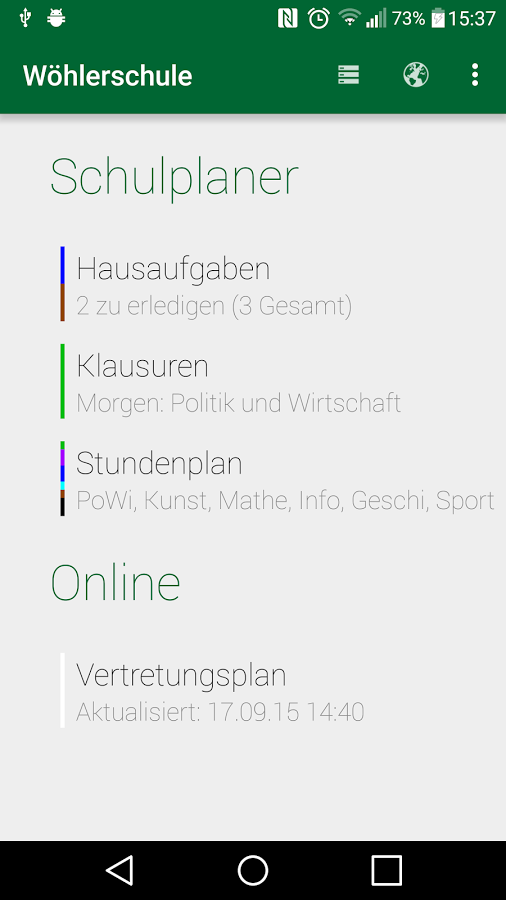 Customizable substitution plan browser and school planner I built for my highschool. Comes in the form of an android app that's backed by a custom PHP web crawler with a MySQL database that sends substitution plan updates via Google Cloud Messaging.